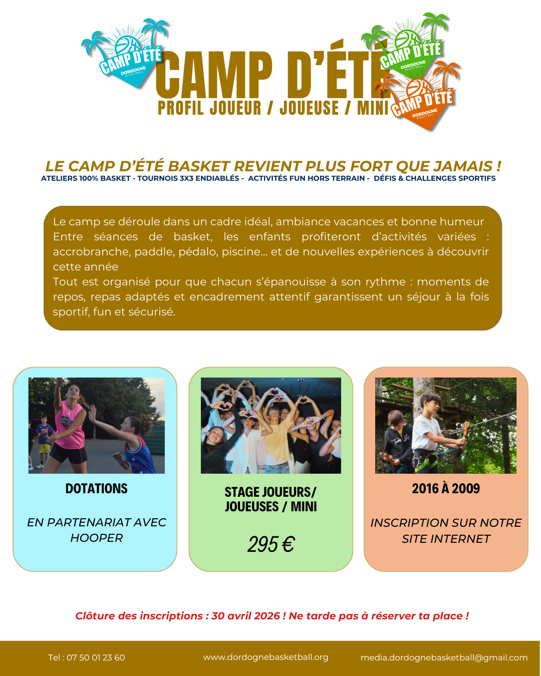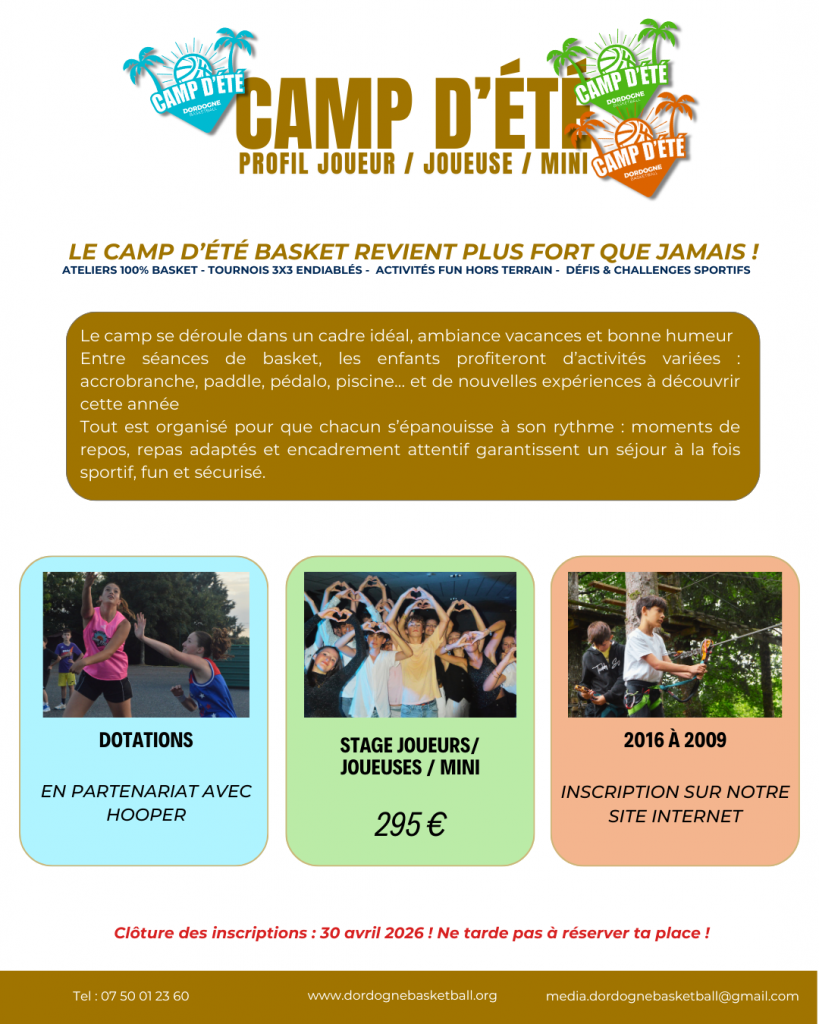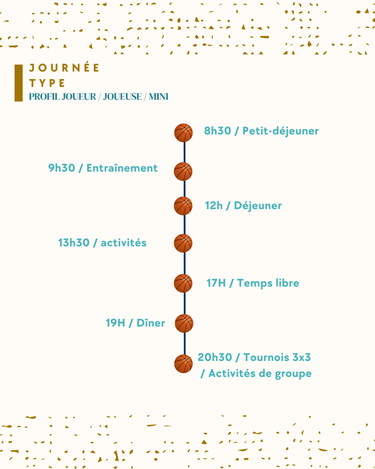 Ouvert aux jeunes nés entre 2009 et 2016, ce camp s’adresse à tous les passionnés de basket souhaitant vivre une expérience riche, mêlant entraînements intensifs et activités extra-sportives.